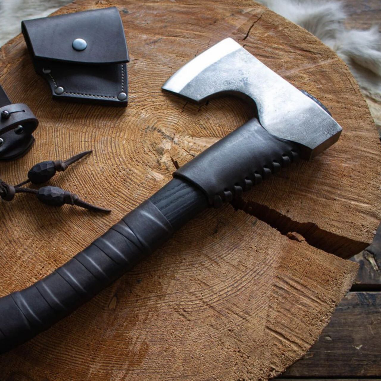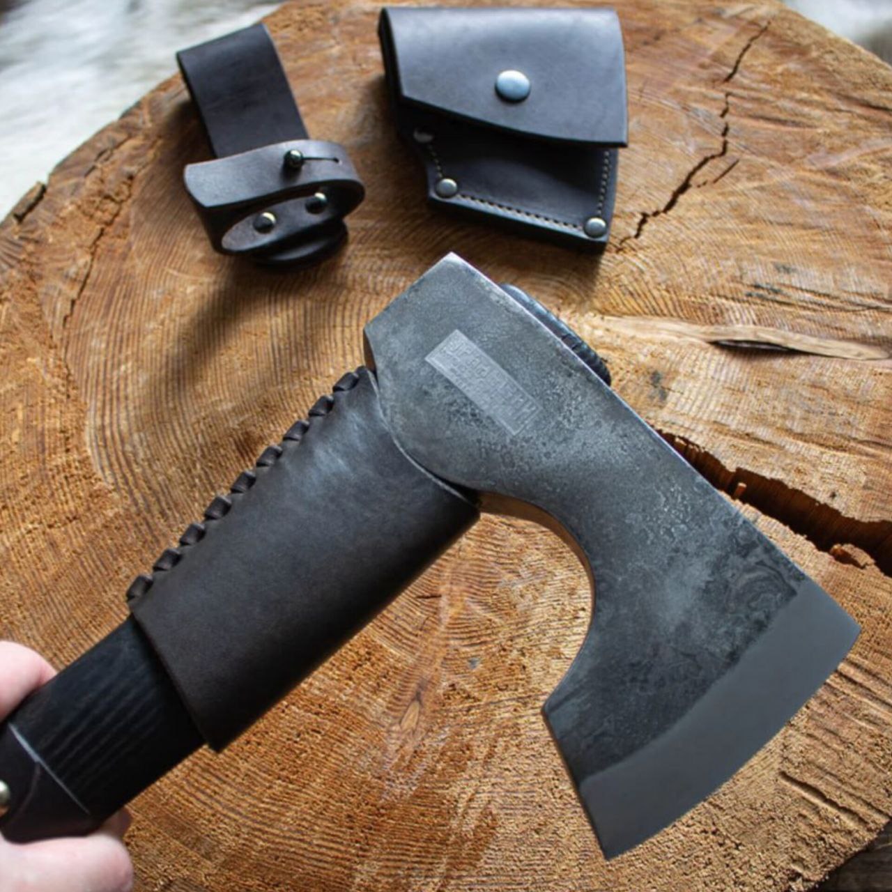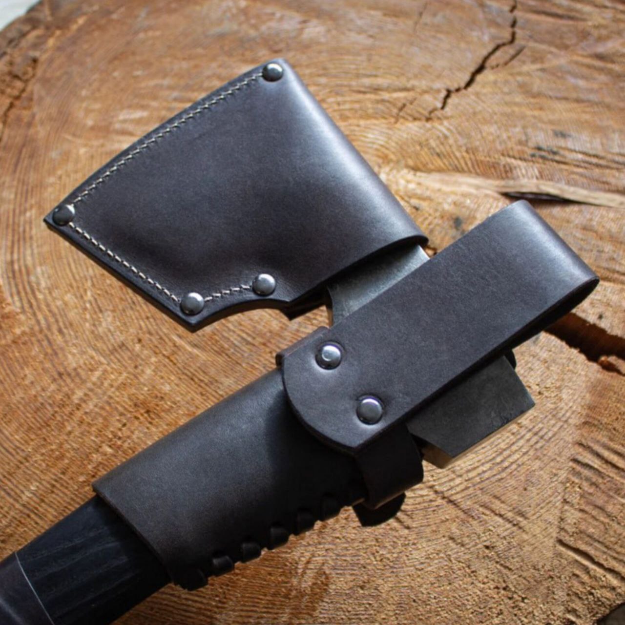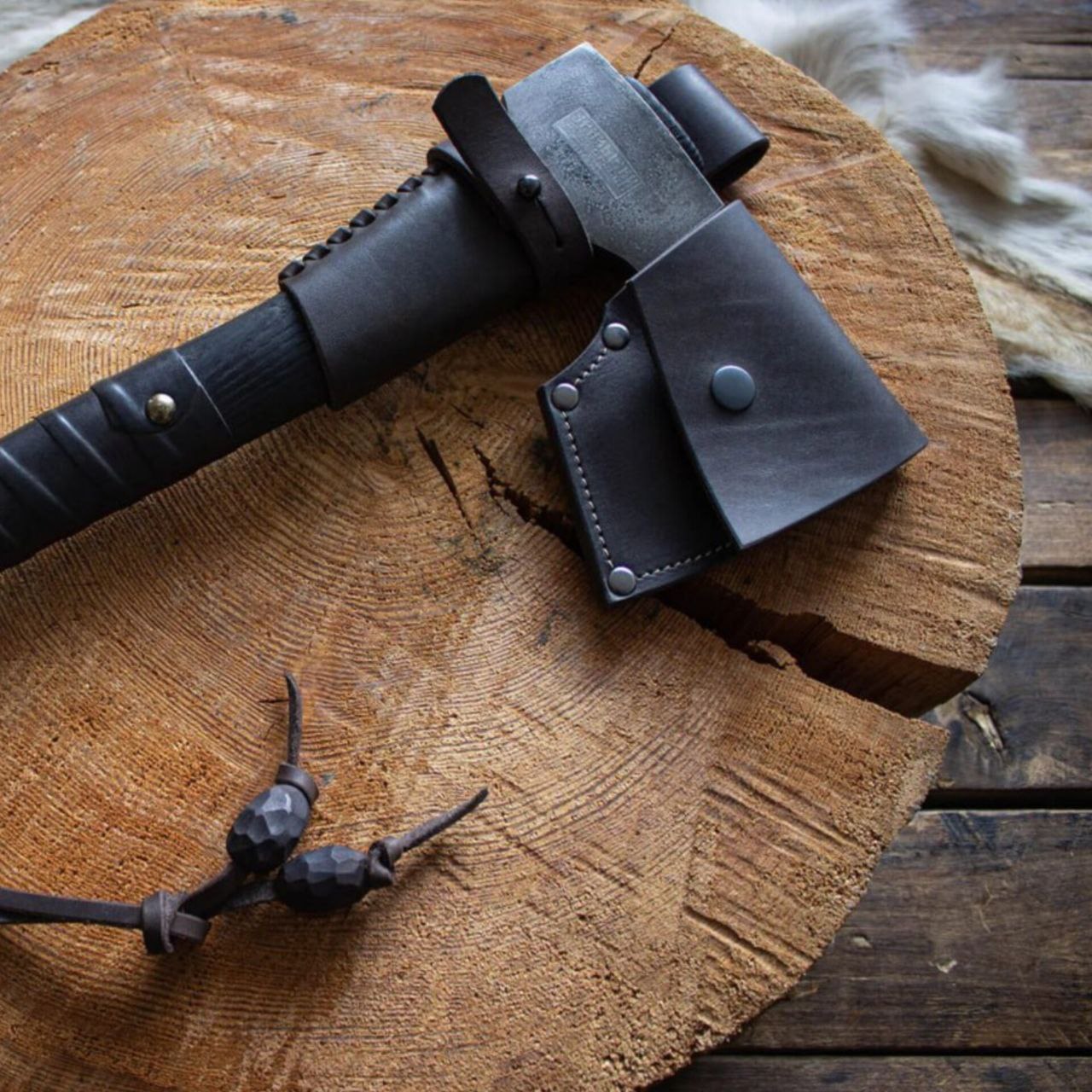 Рукоять изготовлена из прямослойного ясеня Краснодарского края, прошла обжиг и пропитку льняным маслом, что обеспечивает долговечность и надежность в работе. Эргономичная форма позволяет удобно держать топор в руке, а дополнительная кожаная оплетка и защита под головой увеличивают срок службы и комфорт эксплуатации.