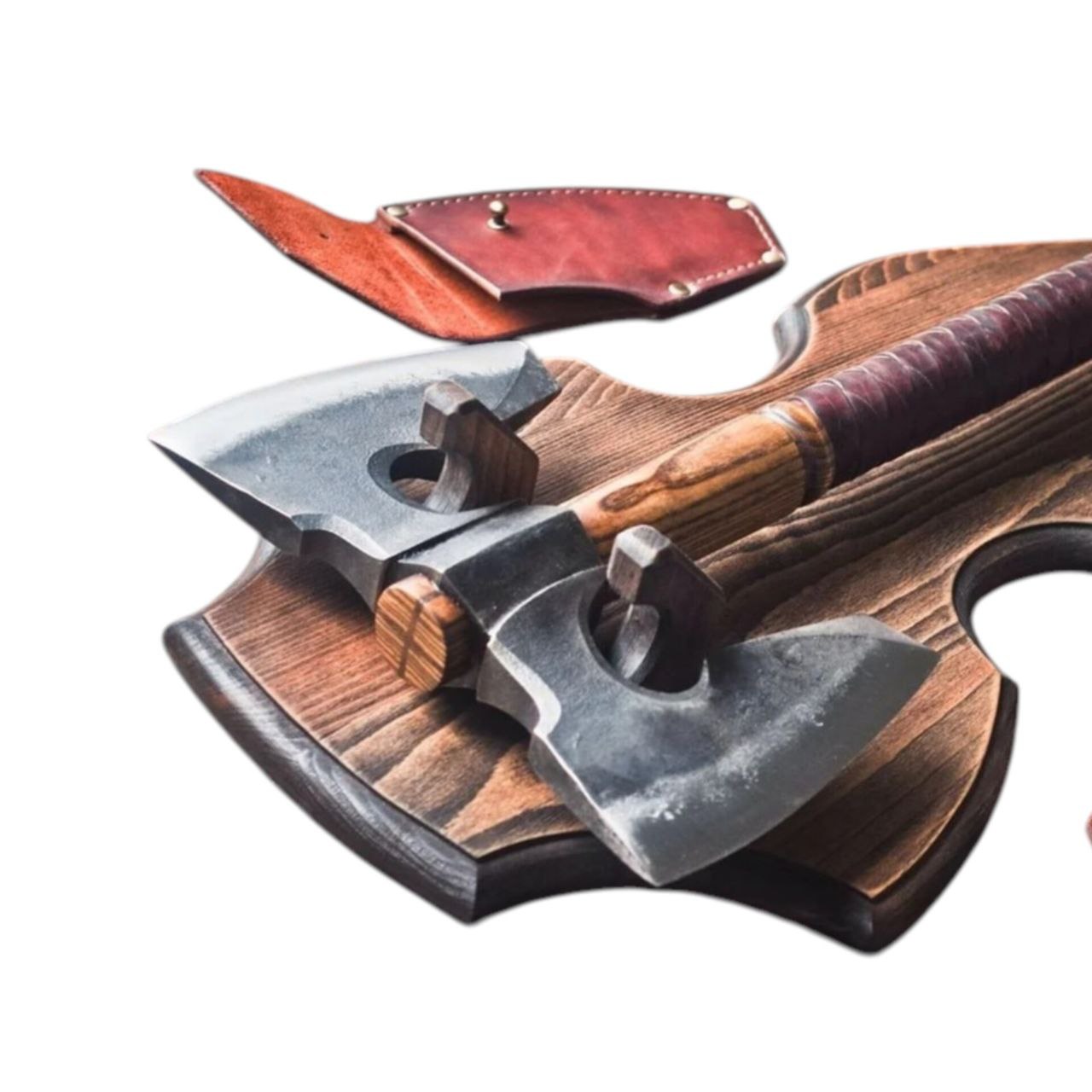 Топор Секира “Илона 2.0“(ILO-2)  — более дерзкая и выразительная версия уже узнаваемой модели, где акцент смещён в сторону фактуры кожи и контрастных материалов. Образ получился хищным и собранным: строгая геометрия головы, плотная посадка на рукояти и визуальная «цельность» делают секиру не просто предметом, а полноценным арт-объектом с характером.