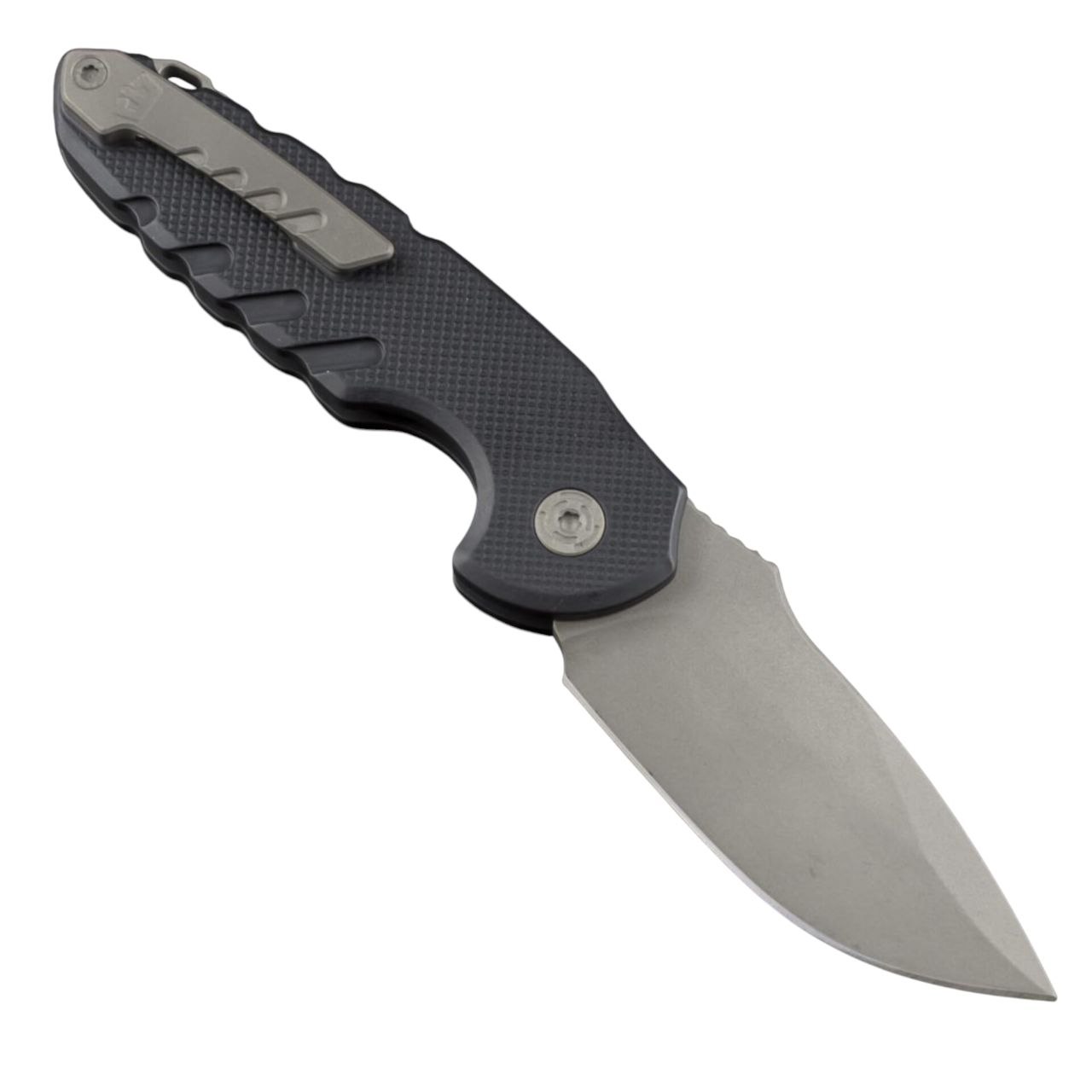 Клинок выполнен из стали CPM MagnaCut — одной из самых технологичных современных порошковых сталей. Она сочетает высокую коррозионную стойкость, отличную прочность и длительное удержание режущей кромки. Финиш Gray Stonewash не только добавляет строгую, «рабочую» эстетику, но и эффективно маскирует следы эксплуатации. Геометрия клинка универсальна: нож одинаково уверенно справляется с повседневными задачами, требующими точного и контролируемого реза.