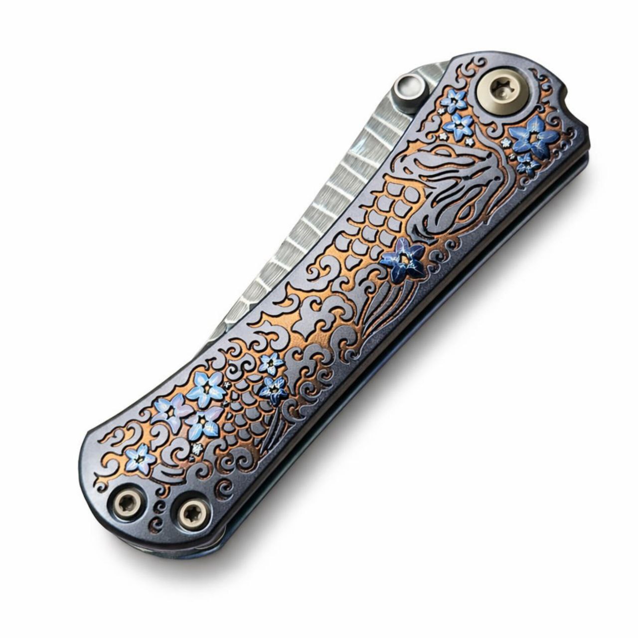 Borka Blades SBKF Ti2 Design Koi Titanium (BBTi2DKSBKFRG)— это авторская модель от известного ножевого дизайнера Борки Благоевича, созданная в сотрудничестве с Ti2 Design. Эта версия, представленная в 2025 году, продолжает традицию смелых и технологичных ножей Borka, в которых сочетаются агрессивная эстетика, продуманная эргономика и высочайшее качество исполнения. Дизайн модели вдохновлён мотивом карпа кои — символа силы, упорства и движения вперёд в японской культуре. Благодаря этому нож получил выразительный и запоминающийся внешний вид, который сразу выделяет его среди других премиальных EDC-ножей. SBKF отлично подходит как для повседневного ношения, так и для коллекционеров, которые ценят авторские ножи с характером и историей.
