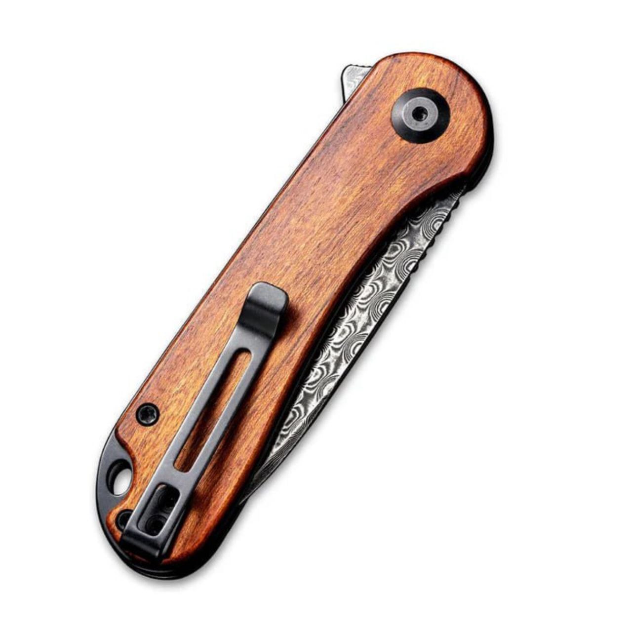CIVIVI Elementum Cuibourtia (C907DS-2) — это элегантный и функциональный складной нож, созданный для повседневного использования. Он сохранил баланс и удобство базовой модели Elementum, но выделяется благодаря клинку из дамасской стали и тёплым деревянным накладкам. Такой нож одинаково хорошо подойдёт как для практичного EDC, так и в качестве коллекционного экземпляра.