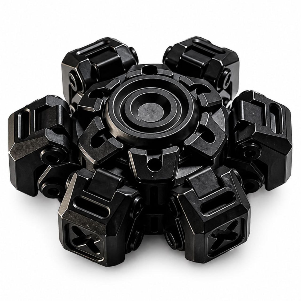 Механическая часть реализована с высокой точностью обработки: плавное вращение, стабильный баланс и контролируемая инерция создают ощущение дорогого и надежного изделия. Конструкция обеспечивает равномерное движение без вибраций, а сам процесс использования приносит выраженное тактильное удовольствие. Mecha City X — это не просто спиннер, а элемент EDC-культуры, который подчеркивает вкус владельца и его внимание к деталям.