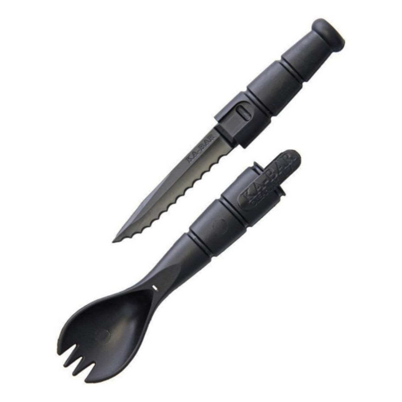 Ka-Bar Tactical Spork & Knife (9909) — универсальный походный аксессуар, объединяющий ложку, вилку и скрытый нож. Компактный, лёгкий и практичный, он легко помещается в карман или рюкзак и закрывает все базовые столовые задачи в дороге, на работе или в полевых условиях.