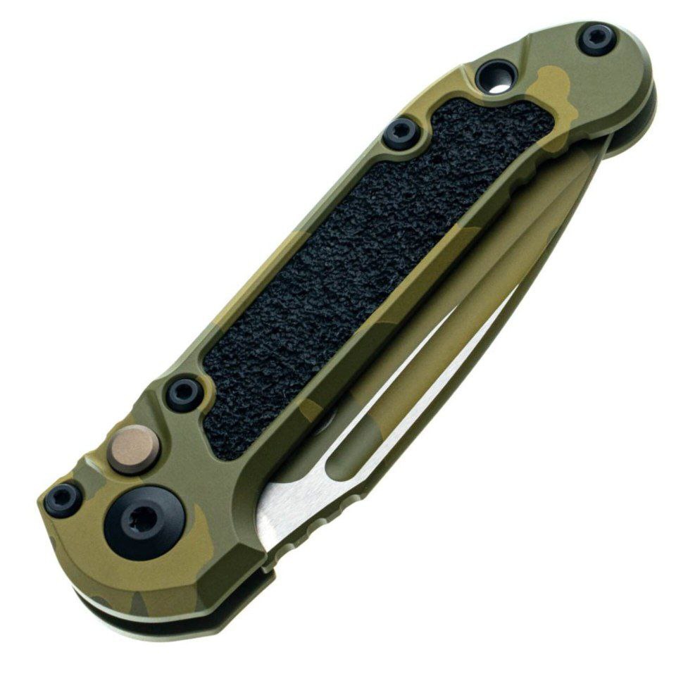 Клинок формы Tanto изготовлен из фирменной стали Böhler M390MK, эксклюзивно используемой Microtech. Он сочетает высокую износостойкость, отличное удержание режущей кромки и коррозионную стойкость. Усиленный кончик, плоские спуски и дол обеспечивают высокий проникающий потенциал без потери прочности. Покрытие Bazooka Camo не только подчёркивает тактический характер ножа, но и повышает его практичность в реальной эксплуатации. Автоматический кнопочный механизм обеспечивает молниеносное и стабильное раскрытие клинка, а конструкция на подшипниках делает работу ножа плавной и предсказуемой.