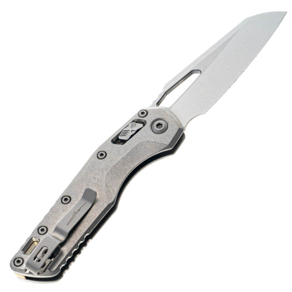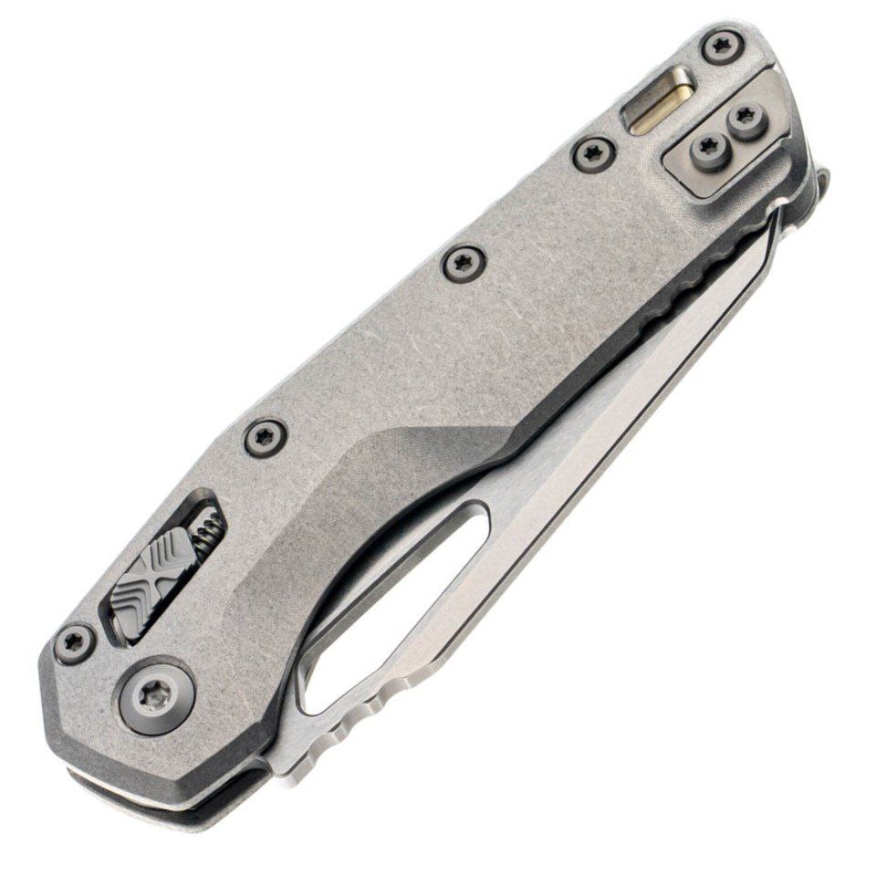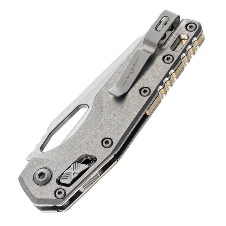 Microtech Marfione Select MSI Titanium SW (210-10MS1) — это воплощение инженерного искусства и дизайнерской утонченности. Этот нож не просто инструмент — это результат многолетнего опыта Microtech и мастерства Marfione, созданный для тех, кто ценит безупречное качество и технологичность в каждом движении. Он сочетает элегантную минималистичную эстетику с высокой функциональностью, превращая любой процесс раскрытия или использования клинка в удовольствие. Уникальная конструкция обеспечивает мгновенную готовность к работе и идеальный баланс, что делает нож удобным как для повседневного ношения, так и для активного применения в сложных условиях.