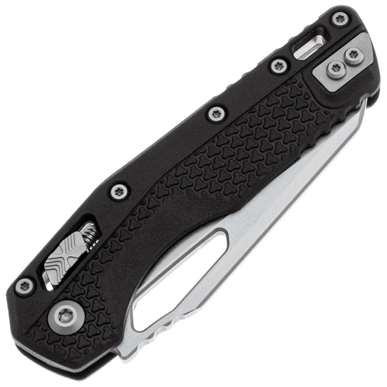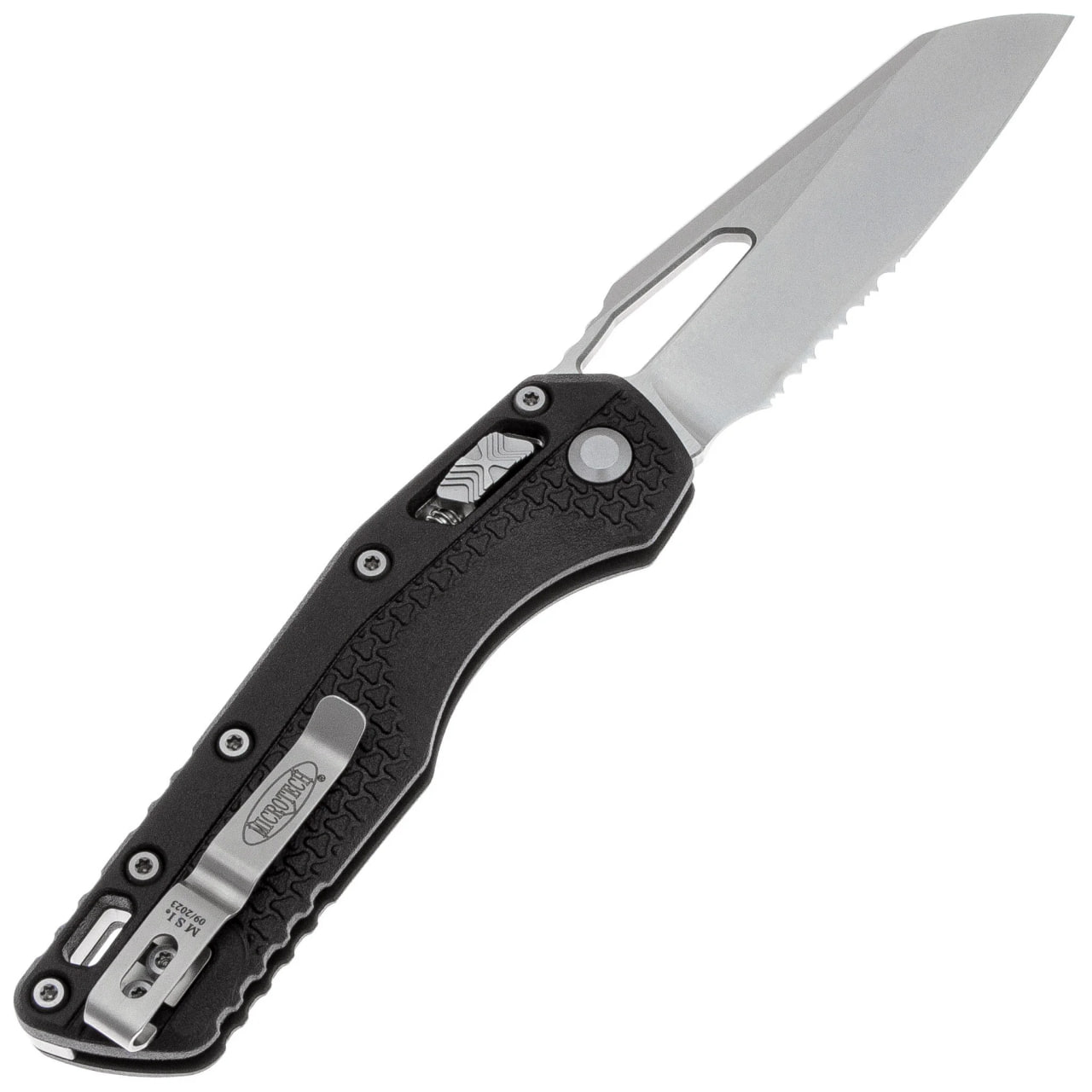 Microtech MSI Black Polymer PS ( 210T-11PMBK) — модель, впервые представленная на выставке SHOT Show 2023, стала новым этапом в развитии линейки складных ножей бренда Microtech Knives. Версия Black Polymer PS сочетает в себе функциональность, современную механику и практичные материалы, ориентированные на ежедневное использование. MSI получил клинок формы sheepfoot с полусеррейторной режущей кромкой, что делает его универсальным инструментом: гладкая часть обеспечивает чистый контролируемый рез, а серрейтор эффективно справляется с плотными и волокнистыми материалами. Геометрия клинка ориентирована на точность и безопасность работы — прямая линия режущей кромки и выраженный контроль кончика позволяют уверенно выполнять как бытовые, так и тактические задачи. Финиш stonewash снижает заметность царапин и следов эксплуатации, сохраняя аккуратный внешний вид даже при активном использовании.