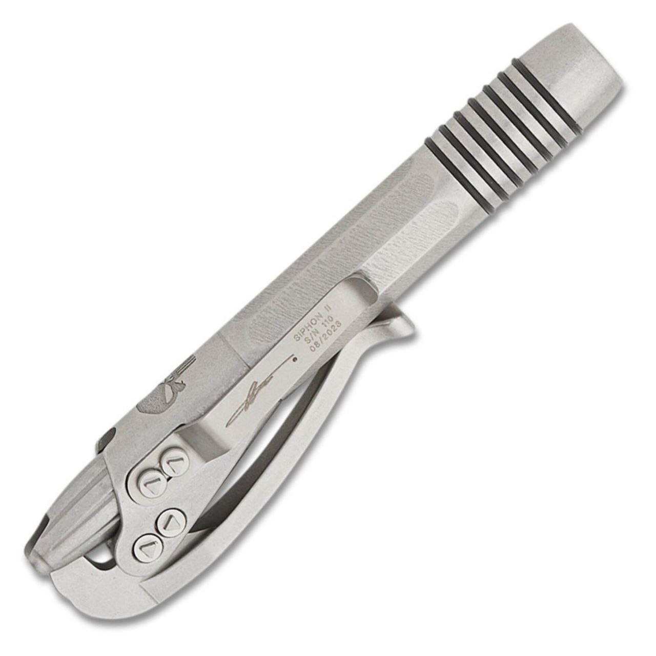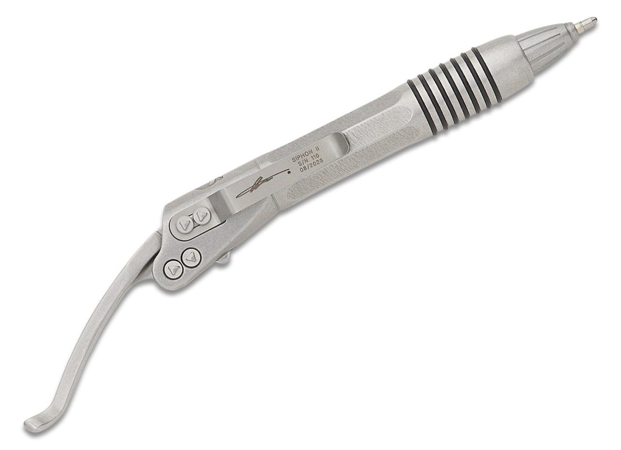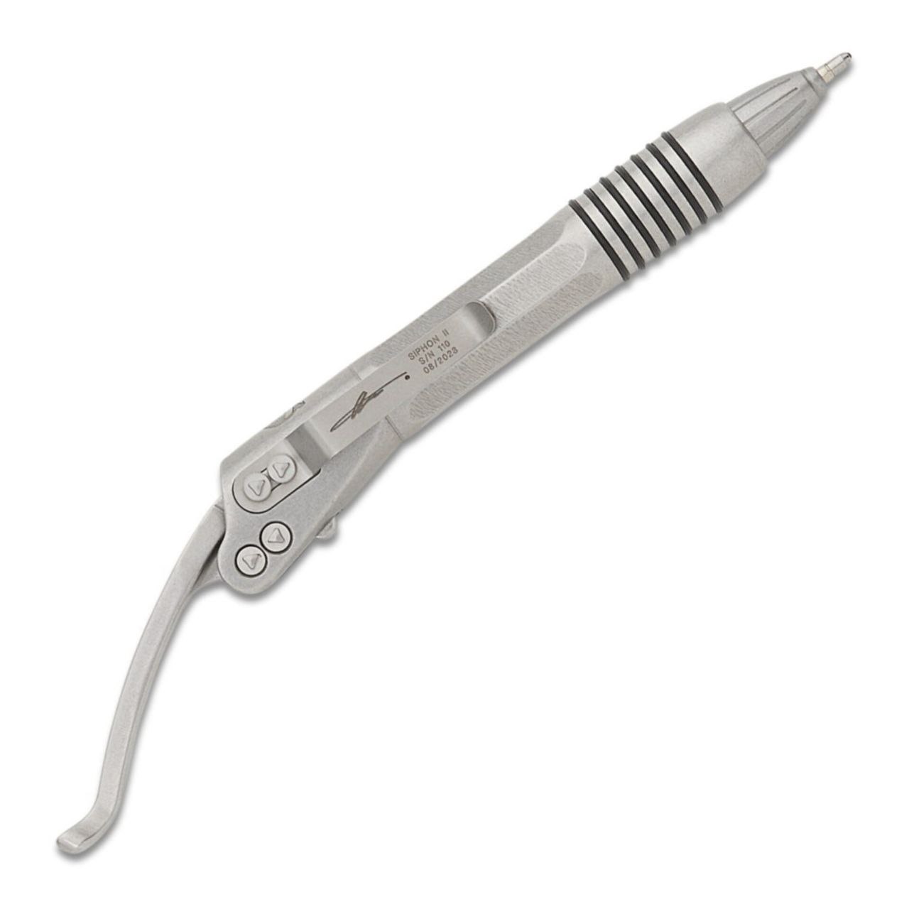 Microtech Siphon II Skull Pen Stainless Steel SW (401-SS-SWSS) — это тактическая ручка с ярко выраженным характером и выразительной механикой. Она создаёт ощущение цельного металлического инструмента, который сочетает в себе функциональность, стиль и фирменный дух Microtech. Гравировка в виде черепа подчёркивает принадлежность к серии с уникальным дизайном и делает изделие заметным среди любых аксессуаров.