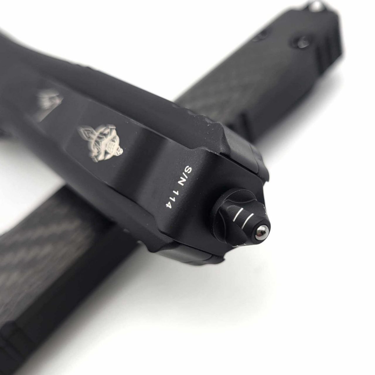 Клинок формы Hellhound рассчитан на агрессивный рез и уверенное проникающее действие. Производитель официально допускает вариативность используемых сталей в зависимости от партии, сохраняя при этом стабильно высокий уровень эксплуатационных характеристик. Эта версия Ultratech ориентирована как на коллекционеров, так и на тех, кто ищет премиальный автоматический нож с ярко выраженным характером. Нож произведён в США и соответствует высоким стандартам Microtech.