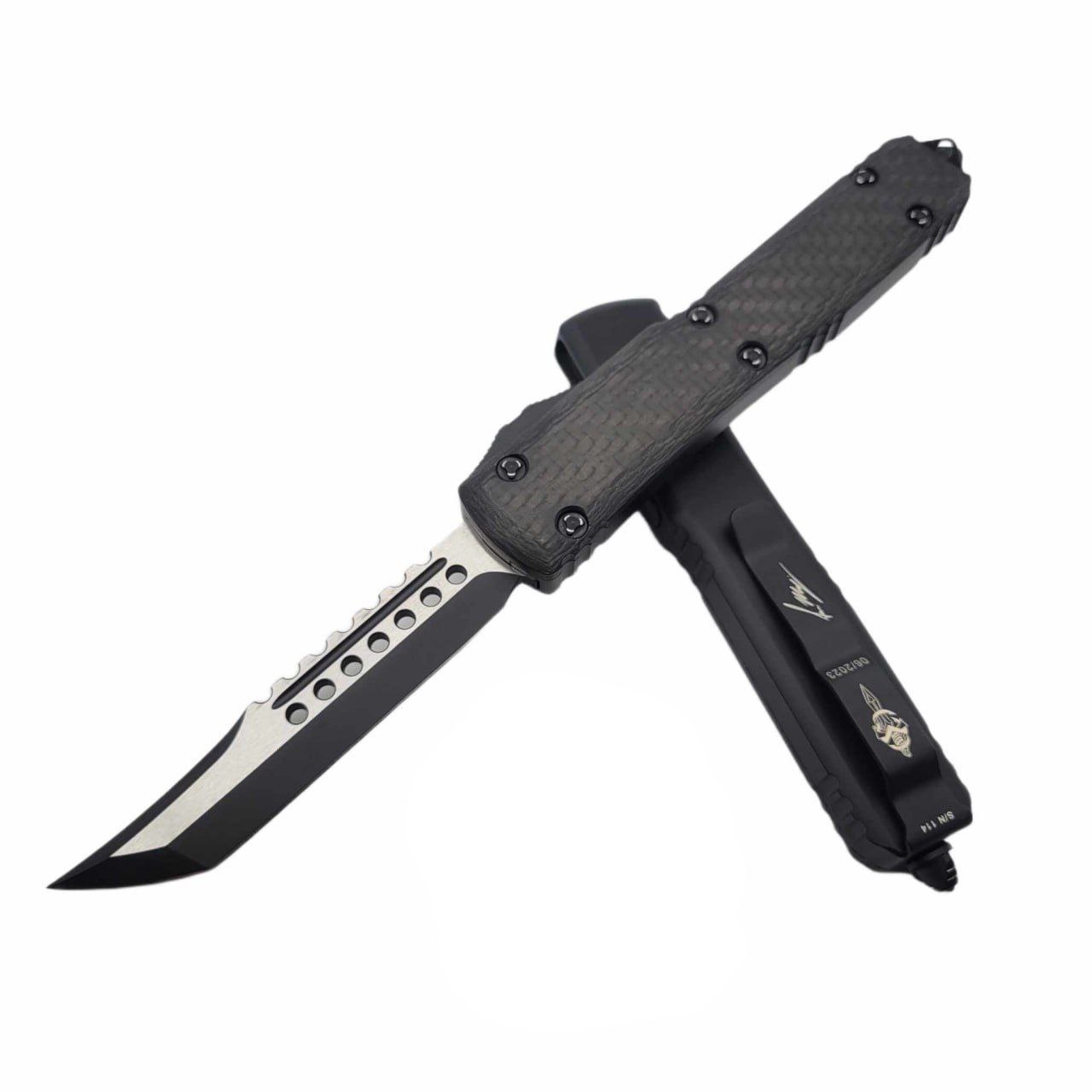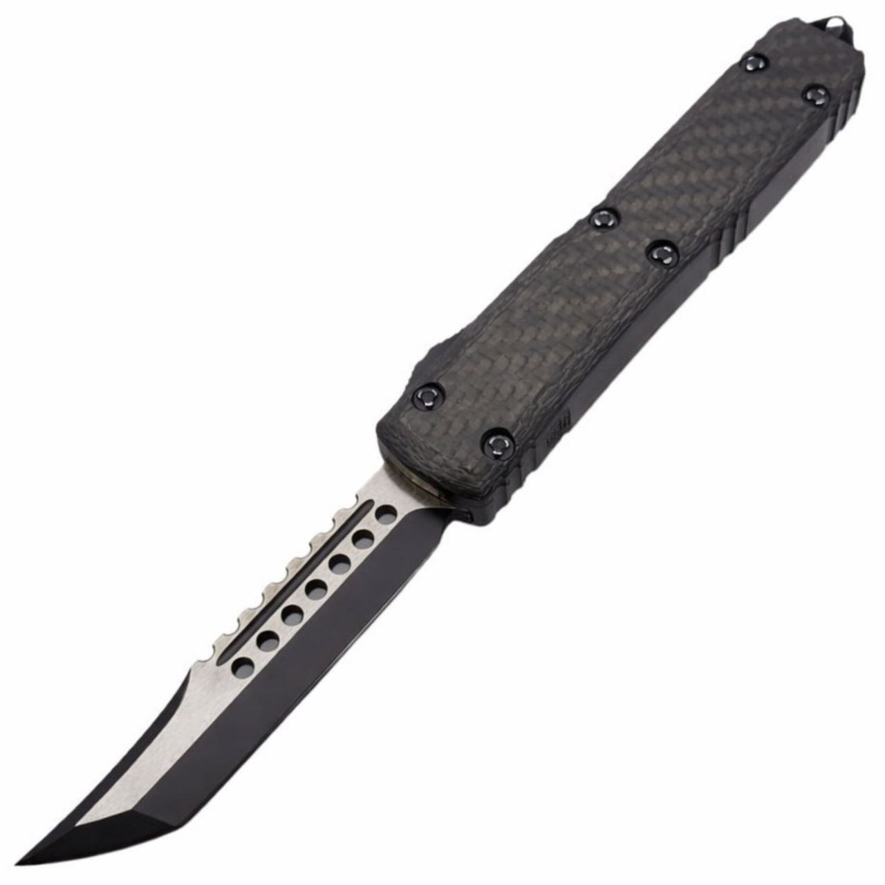 Microtech Ultratech Delta Frag Fluted DLC Tanto (123-1UT-DS) — флагманская версия культового OTF-ножа Ultratech с агрессивным клинком Hellhound и карбоновой верхней накладкой. Эта модель воплощает фирменный подход Microtech к автоматическим ножам: максимальная надёжность, чёткая механика и выразительный тактический характер. Запатентованная конструкция Out-The-Front удерживает боевую пружину в состоянии покоя как в открытом, так и в закрытом положении, что снижает износ и обеспечивает стабильную работу механизма на протяжении всего срока службы.