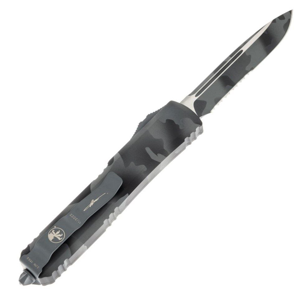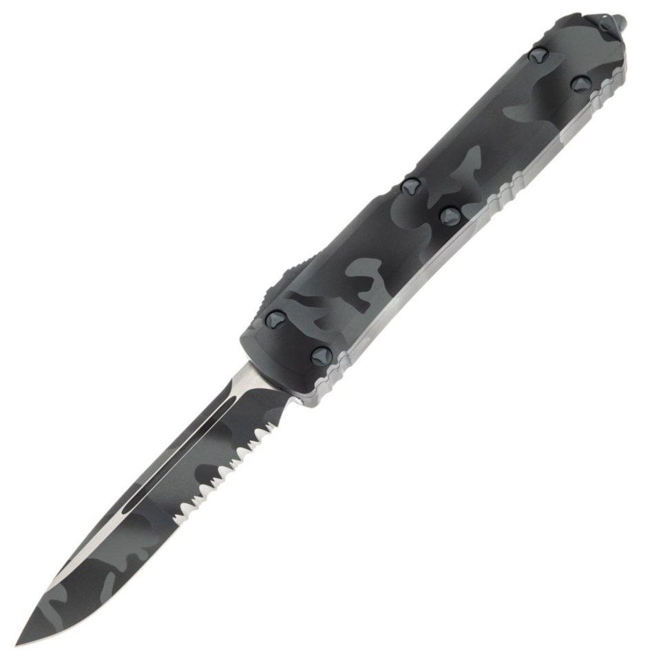 Клинок формы Drop Point с частично серрейторной заточкой делает нож универсальным инструментом для самых разных задач. Такое сочетание позволяет эффективно работать как по мягким материалам, так и по более плотным и волокнистым. Камуфляжная обработка клинка органично сочетается с рукоятью, создавая цельный и продуманный образ. Автоматика Microtech обеспечивает четкую фиксацию клинка без люфтов и задержек, сохраняя контроль и безопасность при использовании. Ultratech в исполнении Urban Camo — это баланс практичности, надежности и современного дизайна.