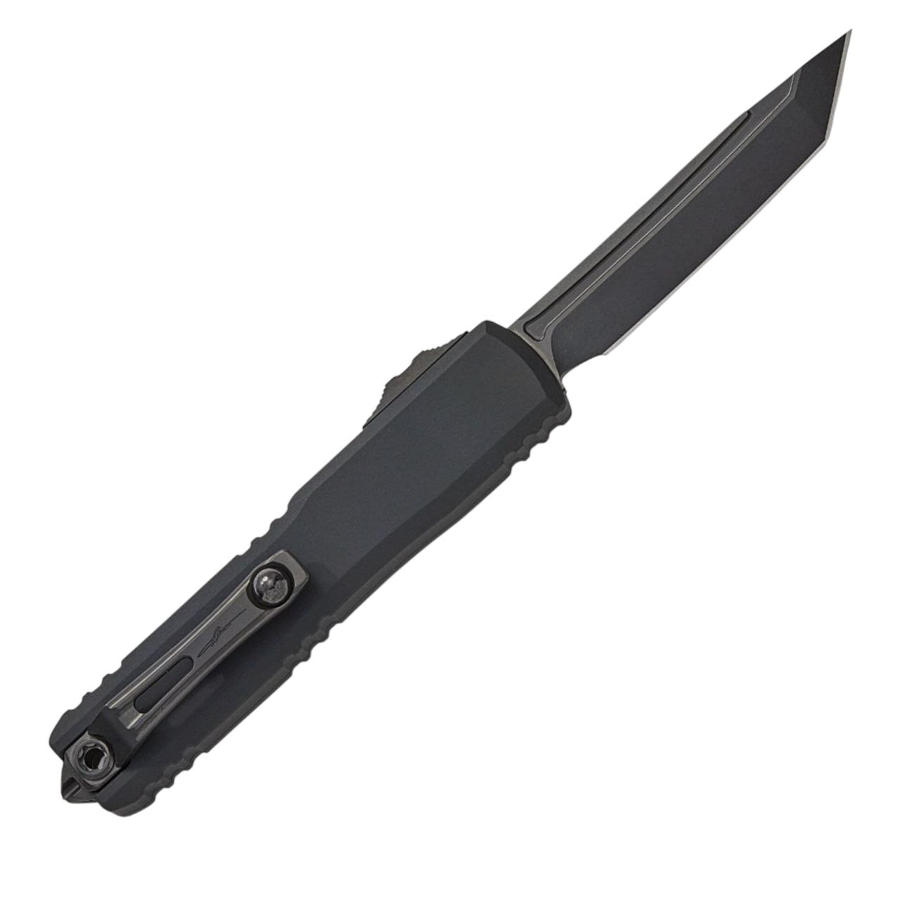 Клинок формы Tanto выполнен из стали M390MK — специальной версии стали Böhler M390, адаптированной под требования Microtech и отличающейся высокой износостойкостью, устойчивостью к коррозии и долгим удержанием остроты. Покрытие DLC делает клинок практически неуязвимым к царапинам и снижает отражение света. В конструкции используется механизм двойного действия: клинок мгновенно выдвигается и убирается движением ползунка. Технологии Zero Blade Play и модернизированная направляющая система обеспечивают стабильность и чёткую работу без люфта.