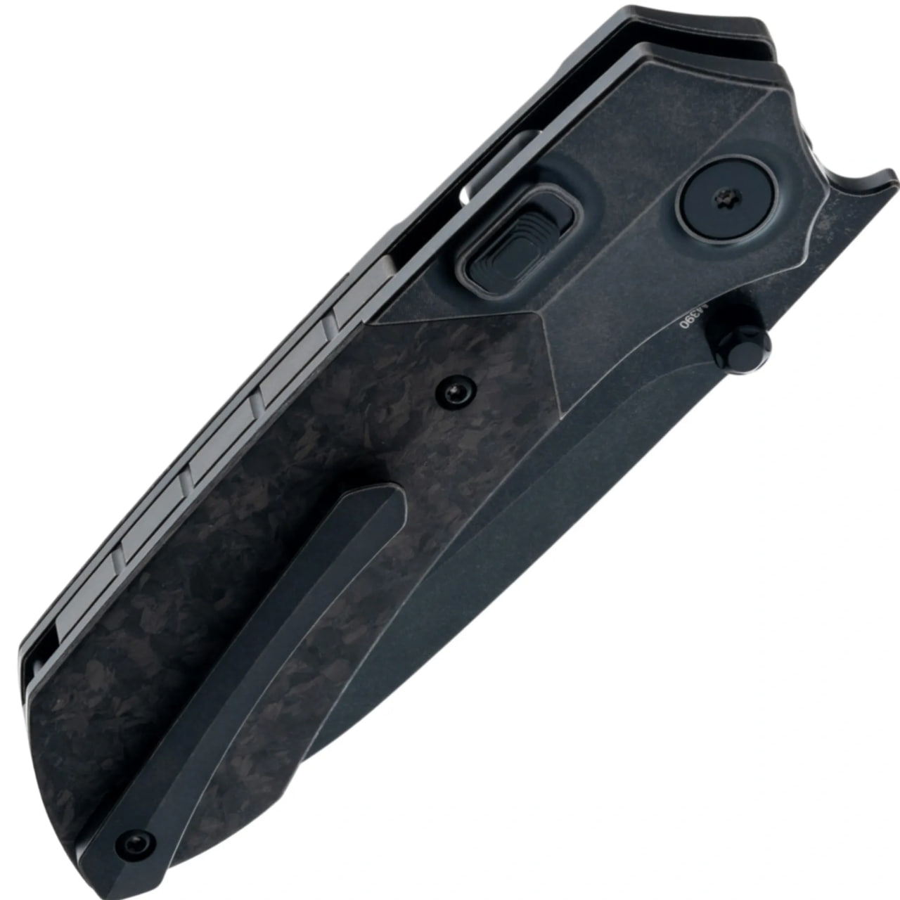 Клинок профиля Drop-point выполнен из порошковой стали Bohler M390 — одного из наиболее востребованных премиальных сплавов в сегменте EDC. Сталь отличается высокой износостойкостью, отличным удержанием режущей кромки и коррозионной стойкостью. Чёрное PVD/DLC-покрытие снижает блики и дополнительно защищает поверхность. Раскрытие осуществляется флиппером или двусторонними шпеньками, а за плавность отвечает осевой узел на керамических подшипниках.