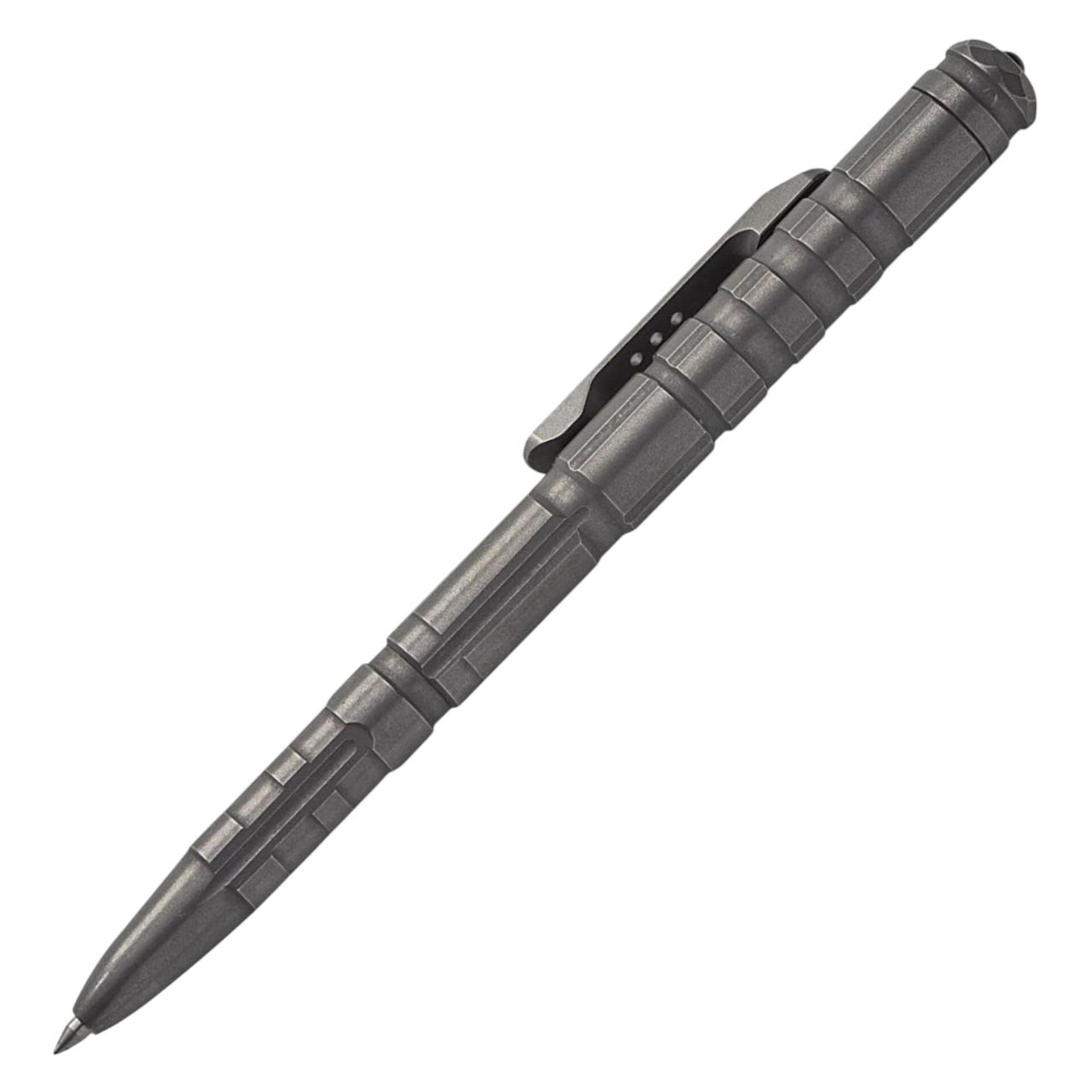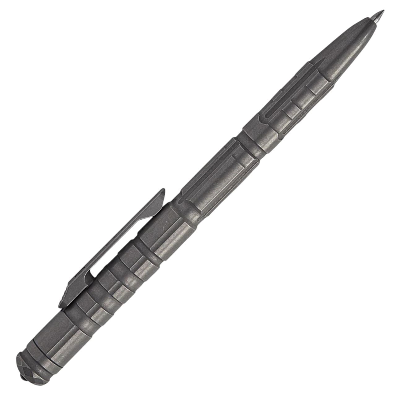 Конструкция ручки продумана для уверенного хвата: на корпусе выполнены точёные канавки, которые предотвращают соскальзывание в ладони даже при влажных или скользких условиях. Форма и баланс позволяют использовать ручку не только для письма, но и как тактический инструмент в экстремальных ситуациях.