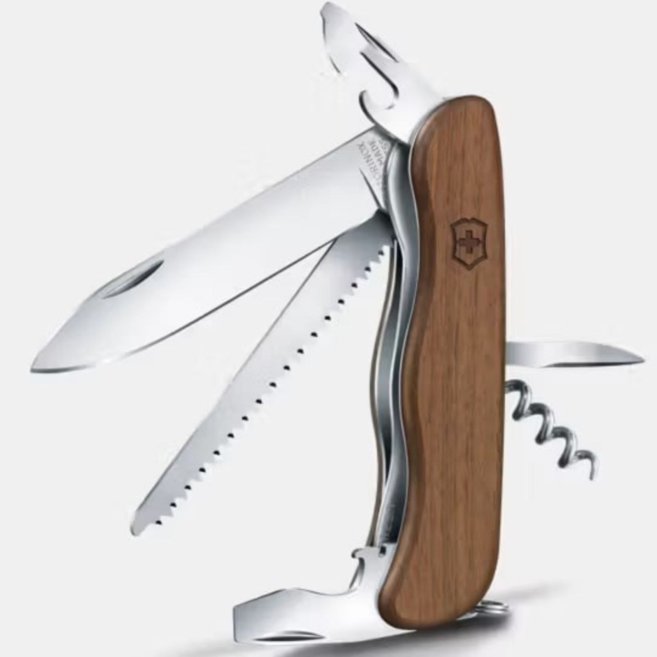 Основной клинок изготовлен из стали X50CrMoV15 — коррозионно-устойчивого сплава, который Victorinox использует как универсальное решение для повседневных задач. Сталь хорошо держит заточку, не боится влаги и легко правится в походных условиях. В дополнение к клинку нож оснащён полноценной пилой по дереву, рассчитанной на реальную работу, а не формальное присутствие.
